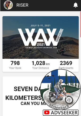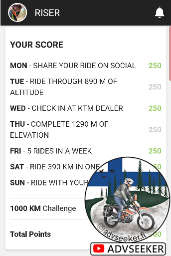 The World adventure week was organized by KTM with Riser app. Idea was that in one week you need to complete certain challenges and drive more than 1000km. More about event can be read from here https://www.ktm.com/en-int/world-adventure-week.html