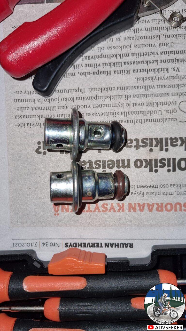 There was also fuel regulator and new fuel filter in pump kit, but those didnt fit to my bike. There was correct filter in local part shop price was about 4 euros (Mahle KL 15 or HENGST 148-H104WK). Also Regulator was incorrect so I put old one back. Regulator is located behind other side of pump cover. You can just pull it out and put new back. (again there is 4 screws that are holding that cover in place)