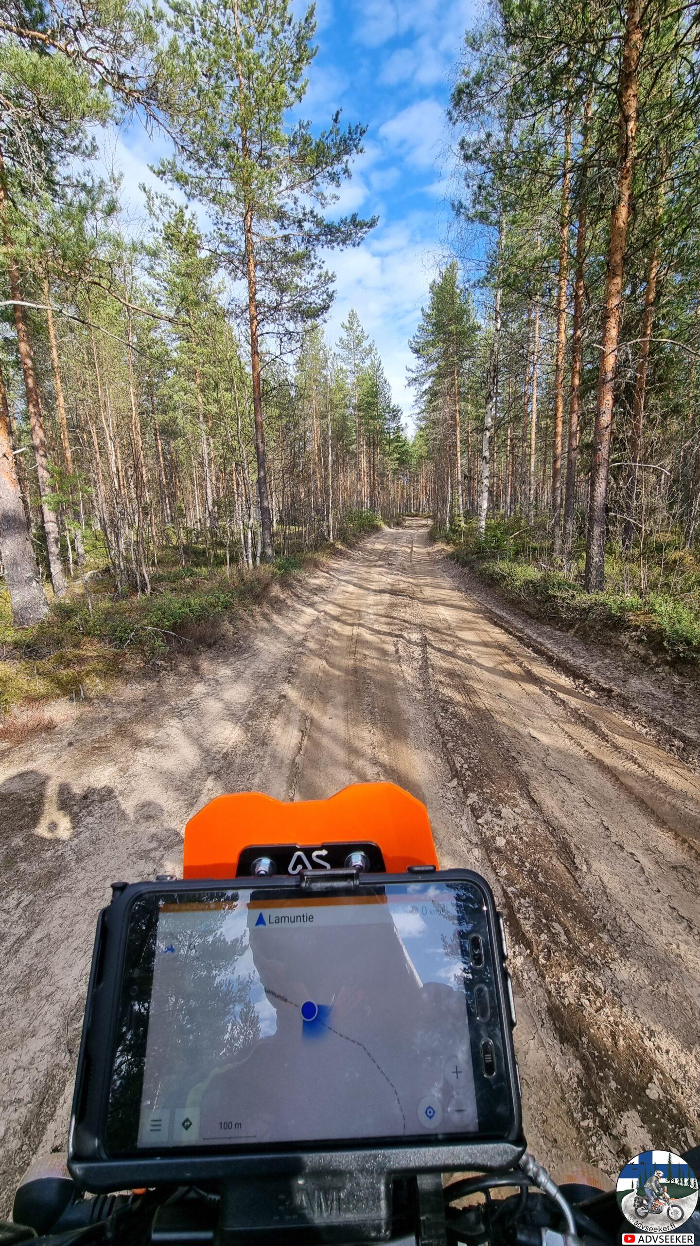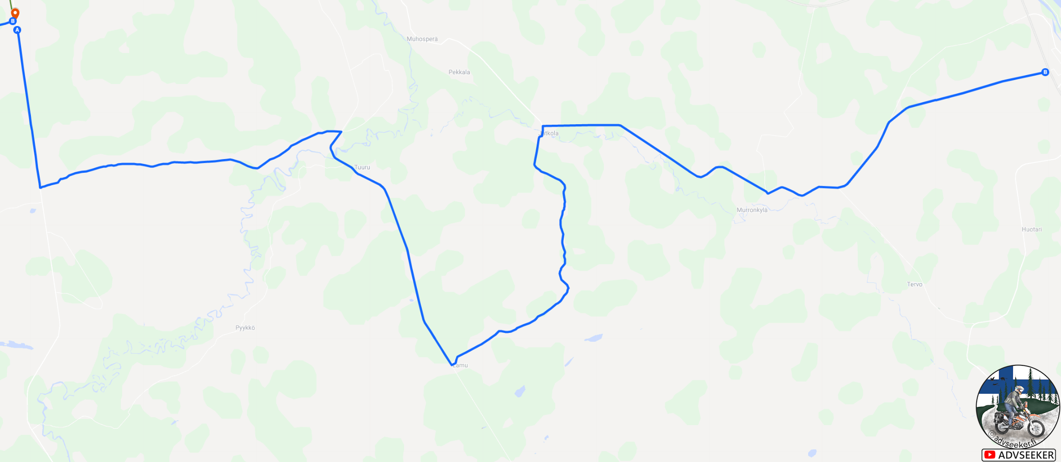I got initial draft of route after discussion and promised to drive it trough to see that roads are legal and there isn’t any no driving signs. Day was supposed to be sunny, but it was actually cloudy and some drops of rain. When I left from home there was +20 and when I arrived to end of section there was still some snow in forest.