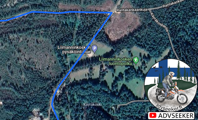 First we have good unpaved road, but in susikaarrontie there is some soft sand. If you dont like that you can take route that is mark as green colour. Next part takes you to nice small roads to Utajärvi. Roads are small but not too difficult even with bigger bike. Trail goes next to Liimanninkoski, where you can take a break.