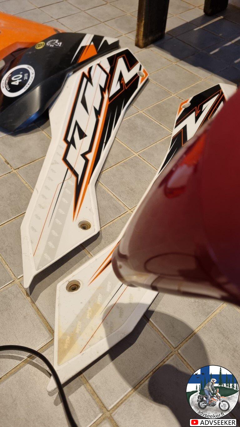 Itselle ei niin ole väliä miltä pyörä näyttää, tärkeämpää olisi että se toimisi luotettavasti. Sain kuitenkin ostettua erittäin sopivaan hintaan uuden tarrasarjan. Luultavasti uudet tarrat ei pysy kauaa hyvänä kun tapana on kaatuilla jokaisella reissulla. Jokatapauksessa uudet tarrat antoivat mukavan raikkaan fiiliksen pyörään.