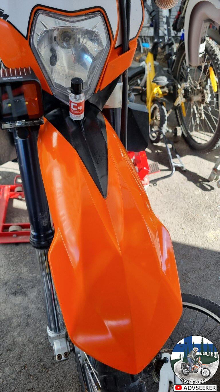Käytin etulokarrin ja takalokareihin muovipinnoite Gtechniq C4sta joka palauttaa värit ja tuo mukavasti kiiltoa. Erinomaista ainetta myös autojen muovien fiksaamiseen.