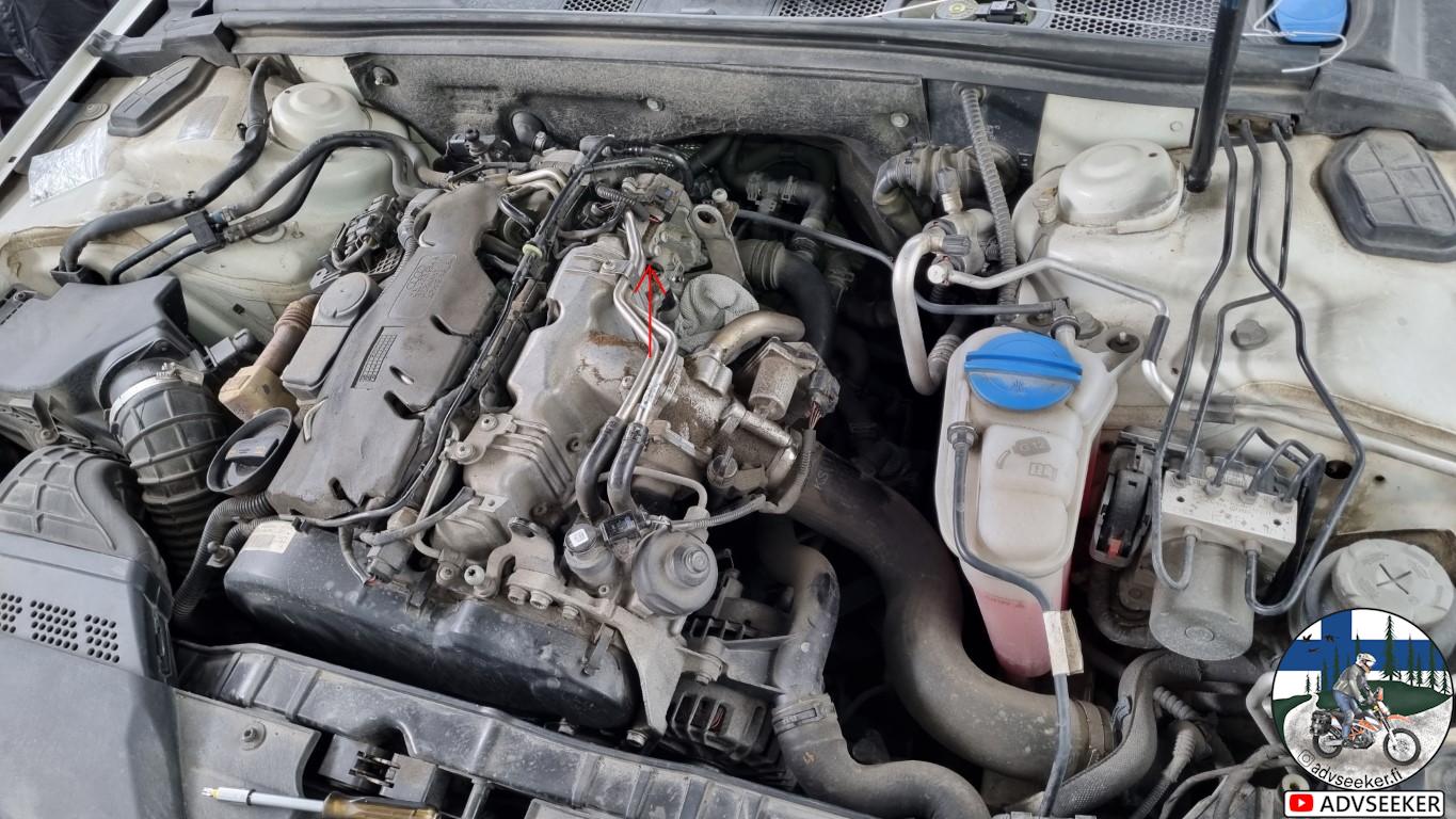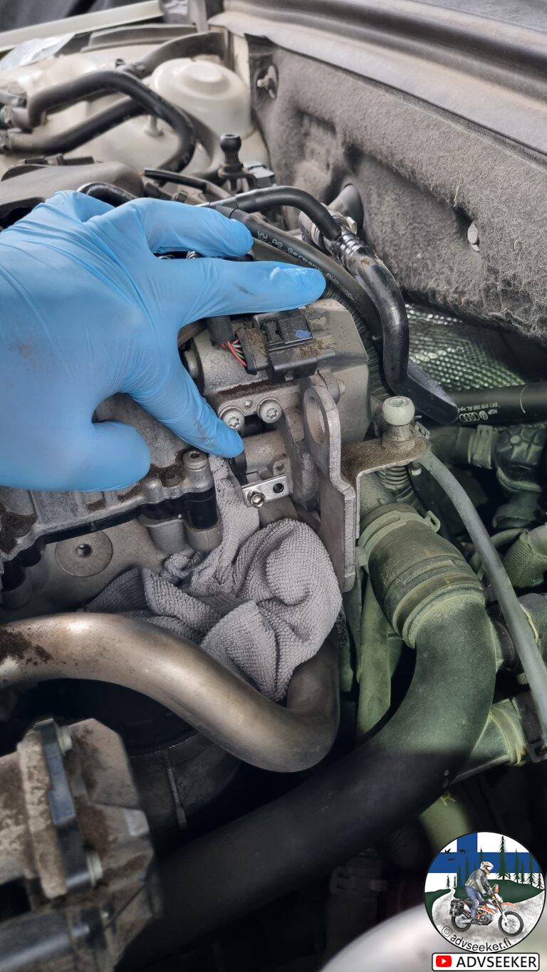 Asentaminen on helppohomma eikä kestä 10 minuuttia kauempaa. Poista moottorin suojamuovi ja katso missä imusarja on. Audi A4 B8 2.0TDI koneessa on koneen takapuolella. Poista pultti, ja laita korjauspalikka vivuston taakse. Vivusto oli itsellä hiukan liian takakenossa joten sitä piti käsin nostaa pystympään jotta korjauspalikka meni paikalle kunnolla.